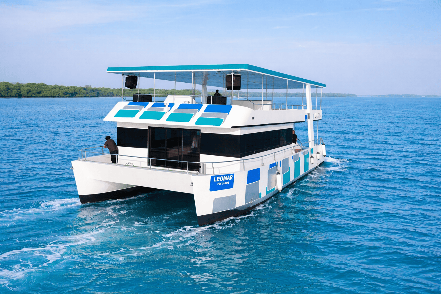 Introducing the BC 63 Dinner Party Cruise Yacht – a stunning 63-ft vessel crafted, designed to host unforgettable gatherings on the water. With an impressive capacity of 140 guests + 6 crew, this yacht is your floating venue for elegant dinners, lively celebrations, and corporate soirées. Powered by twin 250HP engines, the BC 63 glides effortlessly at a cruising speed of 20 knots, ensuring a smooth and enjoyable voyage. Its expansive design, with a Length Overall (LOA) of 19.10 meters and a Beam Overall (BOA) of 8 meters, offers generous space across multiple decks for dining, dancing, and entertainment.